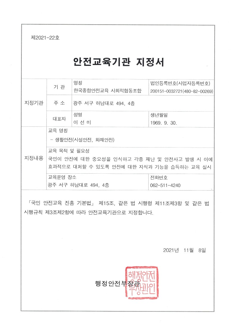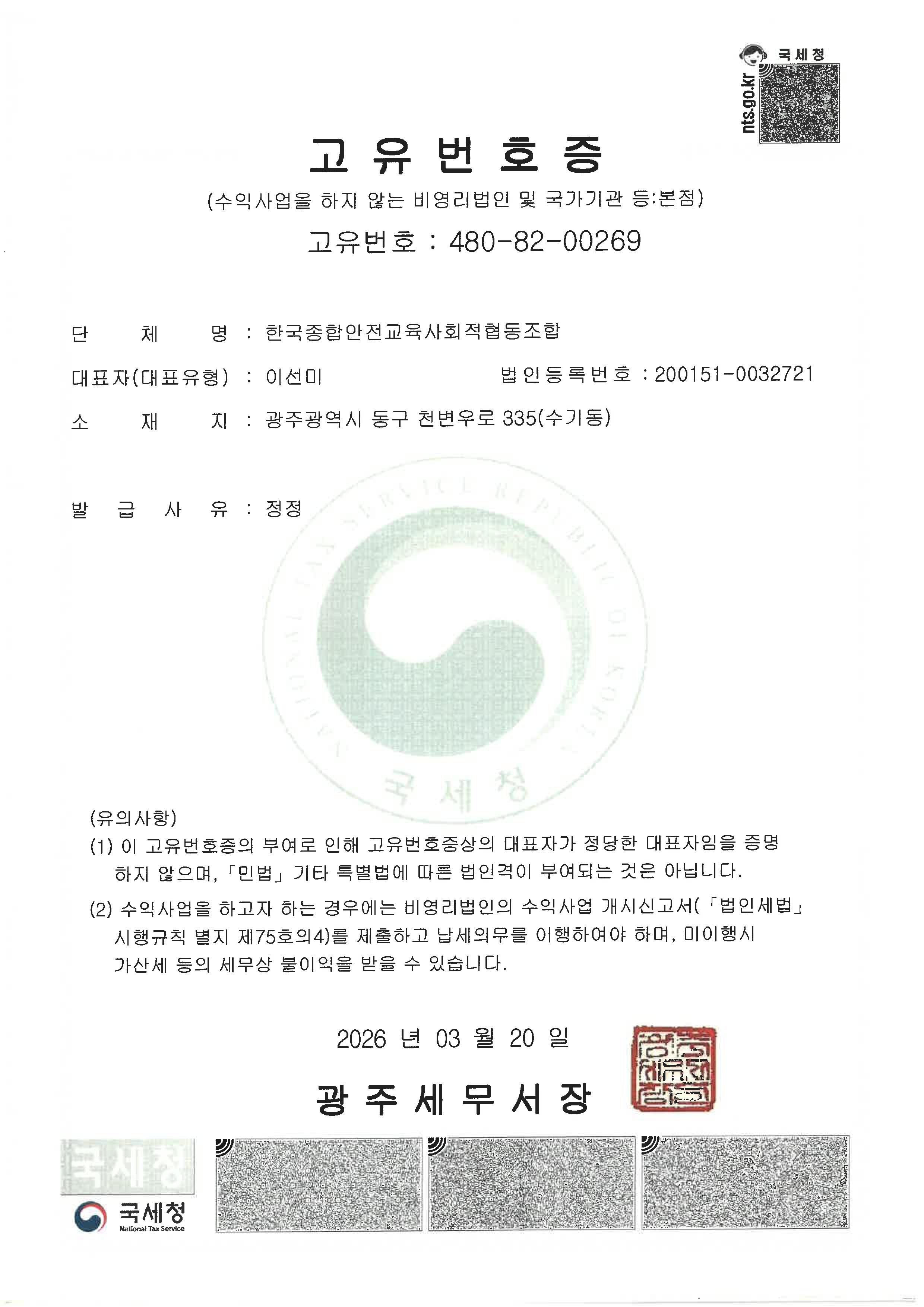 한국종합안전교육 사회적협동조합 방문을 진심으로 감사드립니다.